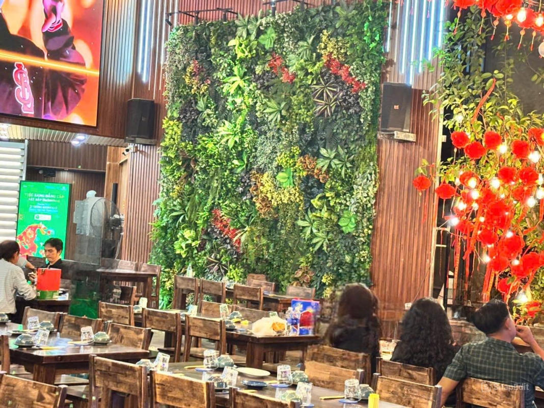 Đặc biệt với những quán ăn đông khách, nhiều bàn ghế gỗ hoặc thiết kế kín, tường cỏ giúp cân bằng thị giác, làm không gian mềm mại và bớt ồn ào hơn.