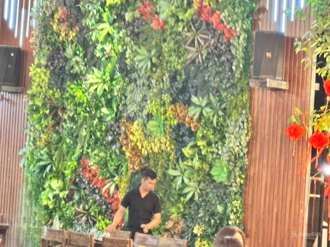 Chính vì vậy, nhiều quán ăn lựa chọn tường cỏ làm background chính tại khu vực trung tâm hoặc sau bàn ăn lớn để nâng cao tính thẩm mỹ và nhận diện không gian.