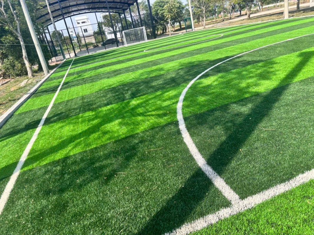 Đặc biệt với sân mini 5-7 người và sân kinh doanh, áp dụng chuẩn FIFA giúp sân chịu tải cao (40-60 giờ/tuần), tuổi thọ dài và trải nghiệm thi đấu gần với chuyên nghiệp.